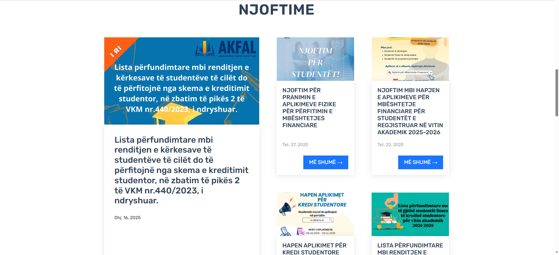 The National Agency for the Financing of Higher Education provides support for the activities of public higher education institutions, as well as support for students through study scholarships. This institution uses a website and an application form for student loans, which have been developed on the Albanian Academic Network. The implementation of the Student Support Application Form will also begin soon.