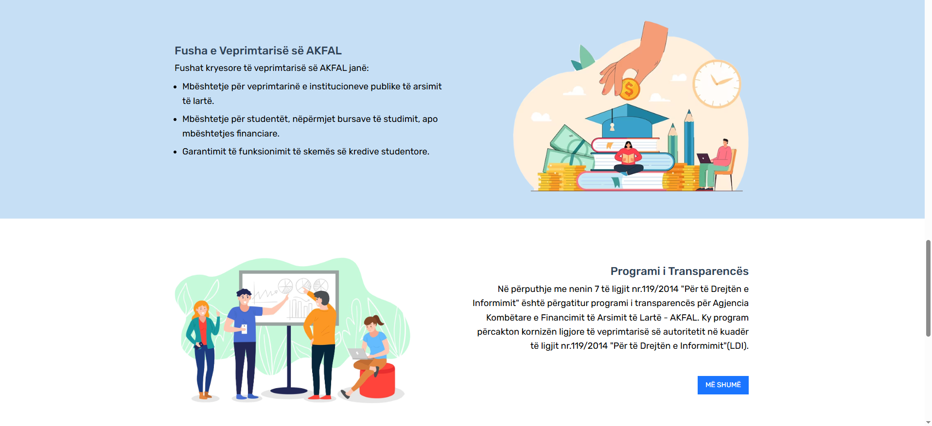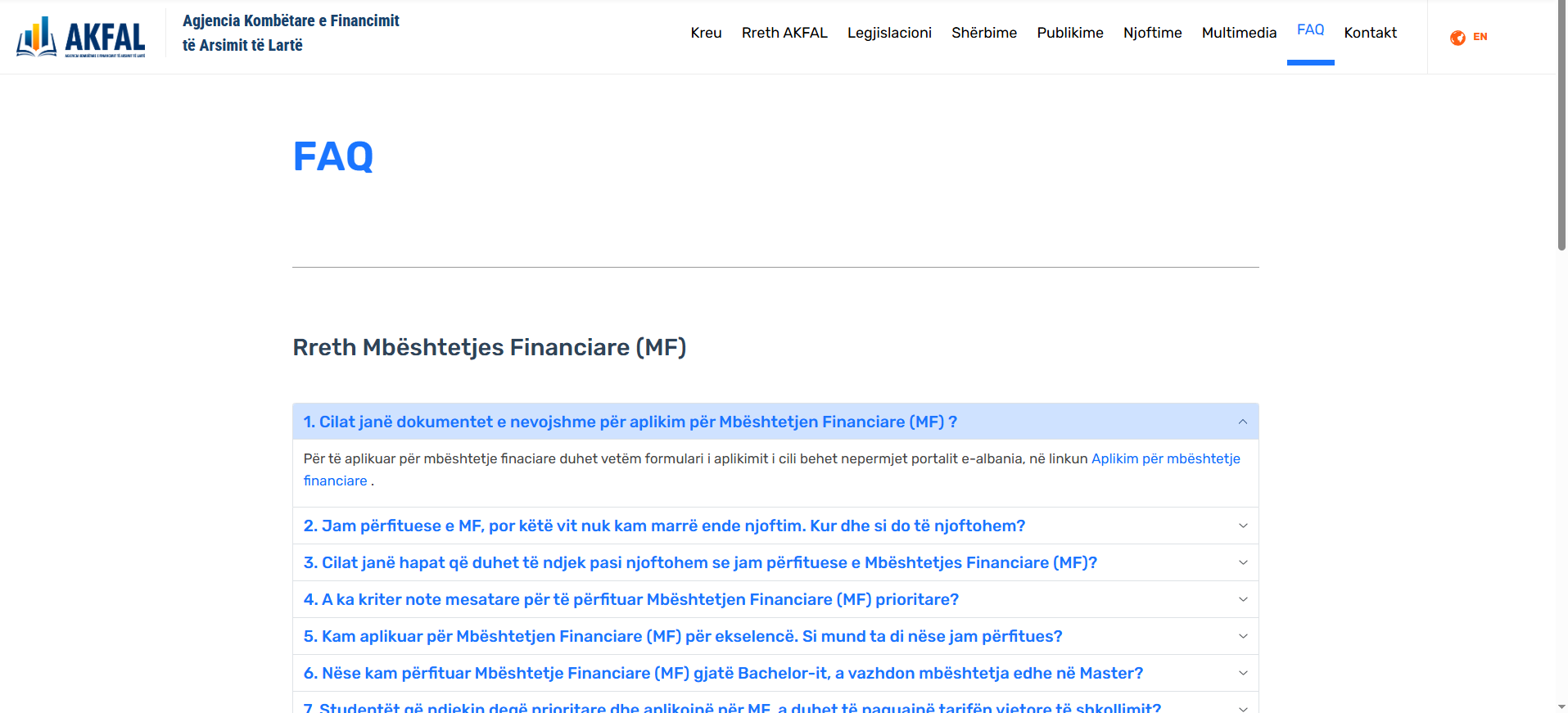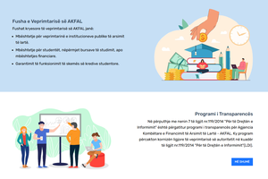 Agjencia Kombëtare e Financimit të Arsimit të Lartë ofron mbështetje për veprimtarinë e institucioneve publike të arsimit të lartë, si dhe mbështetje për studentët me bursa studimi. Ky institucion ka në përdorim faqen e ueb-it dhe formularin e aplikimit për kredi studentore të cilat janë ndërtuar në Rrjetin Akademik Shqiptar. Shpejt do të fillojë edhe implementimi i Formularit për mbështetje Studentore.
